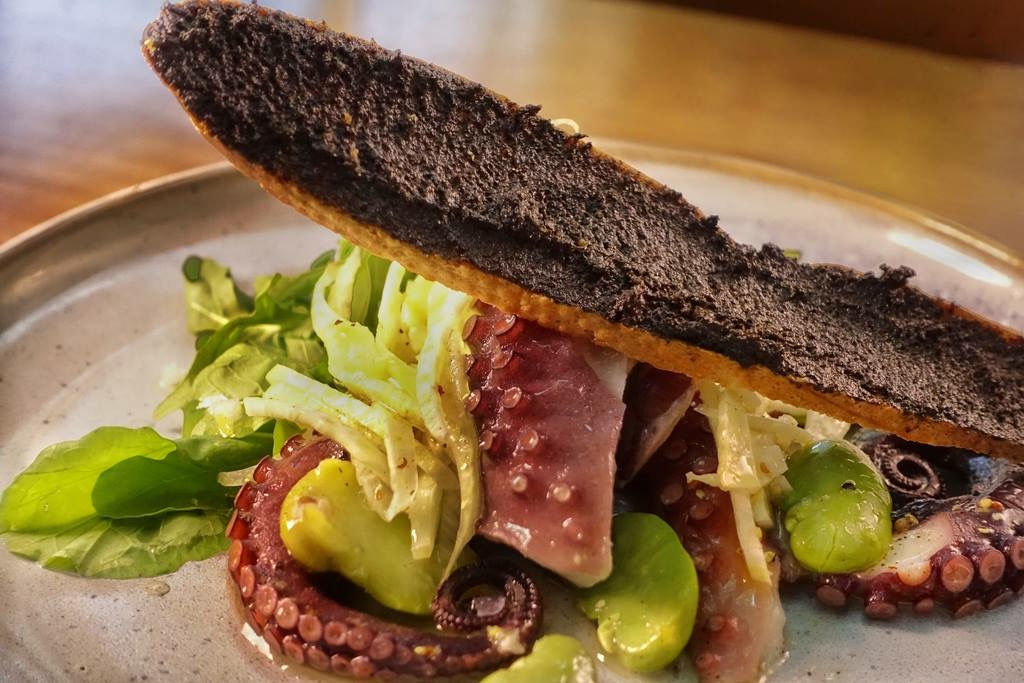 Huachinango con calamares al vapor, verduras salteadas y vinagreta de mole, ¡Tienes que probarlo! (Menú otoño 2015)