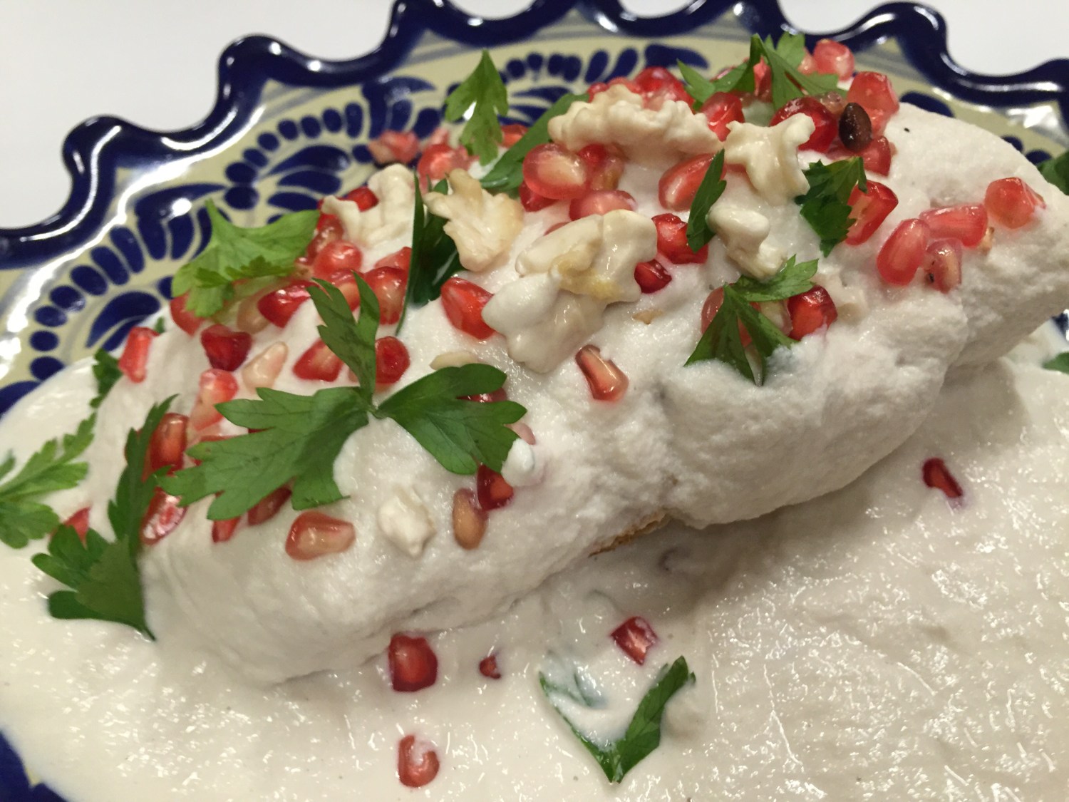 Esté es definitivamente la más grata sorpresa del 2016; el relleno es muy tradicional: carne de res y cerdo con canela, tomillo y frutas como el plátano y durazno, en dónde nos quedamos con el ojo cuadrado por que no nos las esperábamos fue en la nogada. El chef Francisco Rivera nos sorprende con una nogada con “Leche de coco”, no te espantes ni quieras salir corriendo, en verdad el toque de dulzor que le aporta es buenísimo.