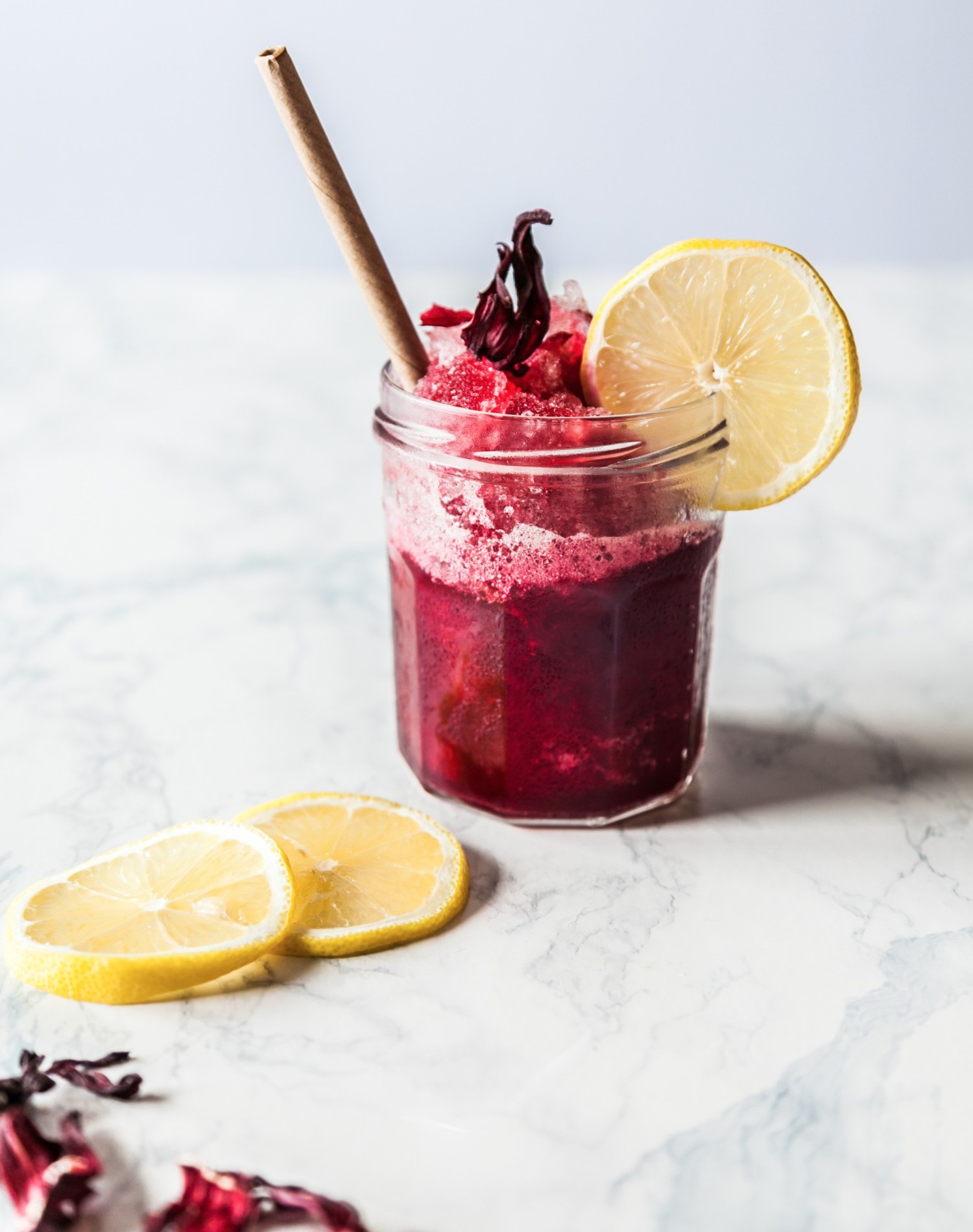 Mi papá me enseño dos maneras simples para prepararla: puedes dejar remojando en agua un par de flores toda la noche y al día siguiente solo la diluyes y la endulzas, o la forma más fácil y rápida es hervir un par de flores y después le pones un par de hielitos y ¡voila! tienes una rica agua de Jamaica.