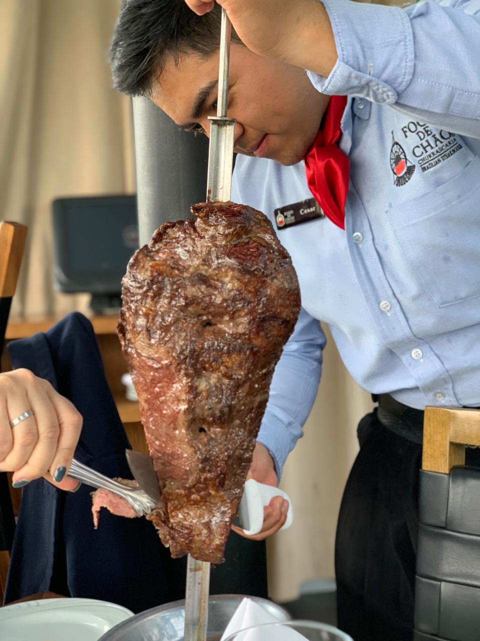 Al concepto de Fogo de Chao se le conoce como Churrasco, el cuál se origino en el sur de Brazil, aquí la carne es bañada con agua con sal y se pincha en espadas de metal que son expuestas al fuego (los cortes más grasositos van hasta arriba para que los jugos escurran en los otros cortes y le den más sabor, !Yum¡)